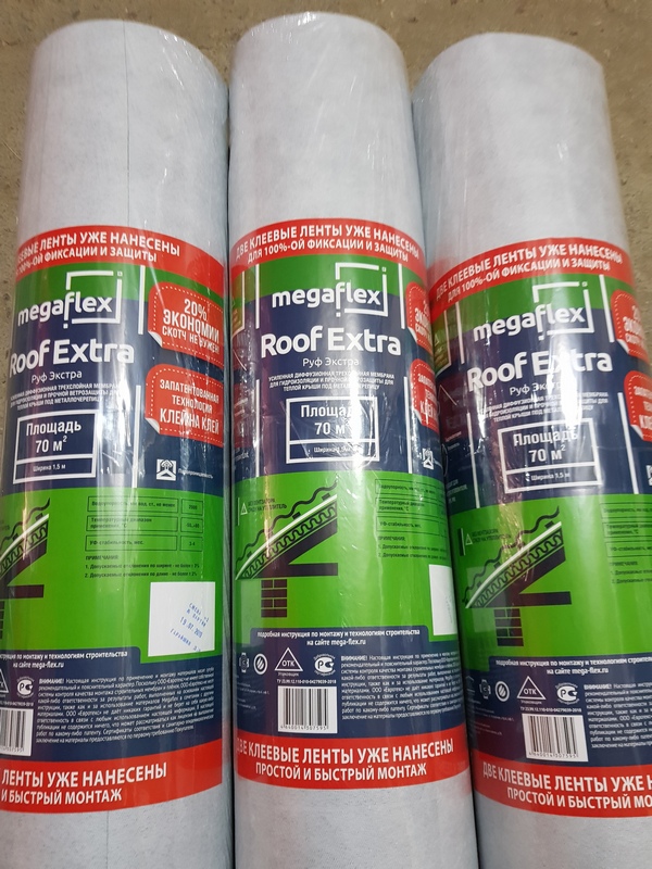 Усиленная диффуззионная мембрана для гидроизоляции и прочной ветрозащиты для теплой крыши под металлочерепицу.