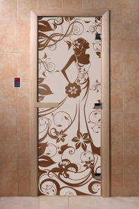 Дверь DoorWood "Девушка в цветах" 1900х700х6мм (бронза с рисунком) (2 петли) (коробка Хвоя)